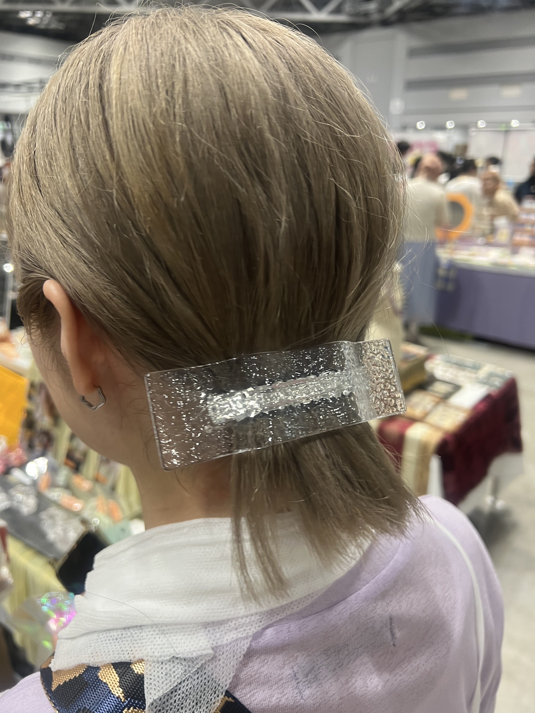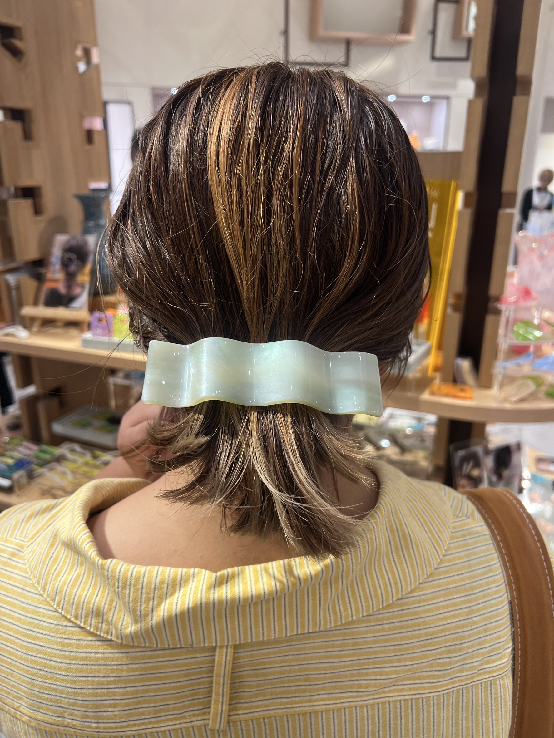ボブヘアや、お団子ヘアのアクセントにも可愛いアイテムです。バレッタだけでハーフアップや1つまとめのスタイルが人気です。毛量が多い方はeMEのlongバレッタでしたら安心して1本でおまとめいただけます。